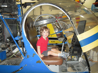 I didn't say anything to Bode about where we were going until we were about 5 minutes away from the museum. I didn't want to build it up too much. I didn't know what to expect. For all I knew, it was a tiny space outside a hangar, with one old bi-plane and one old flight suit. Thankfully, the place delivered. It was exciting and fun. Bode was able to walk into a real plane and sit in a real helicopter. There were a ton of planes and helicopters to view. Bode was especially happy to find an old Ford, that he called "Lizzie" (from the Cars movie). We also stood outside and watched planes taking off, and even saw a helicopter take off, too. I think this place will be perfect practice for our big flight in September! I will just stick them in the old retired Boeing jet, and have them sit in their seats for an hour, and slowly build up hour by hour until they are ready for a 5 hour flight!