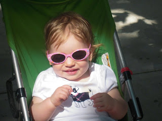 Gianna is getting closer to that cruising-to-walking stage. She now 'walks' on her knees. And she'll crawl with her legs straight for a ways, too. It won't be long. We saw a lot of babies walking-toddling around at today's play date, and I told her, "Don't get any ideas." It is surprising how many of the babies in her play group are walking now. Gianna is also quite the "cruiser" on anything with wheels. Maybe it's from watching Bode.