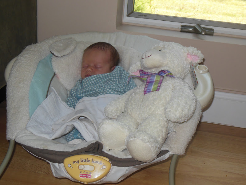 Master Nicholas snoozed quietly in his bouncy seat (or as a babe in arms) during Nana's entire visit.
